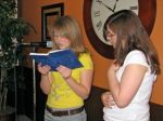 Cindy had the young musicians prepared so well that she was hardly visible throughout the performance. The students combined singing, playing their recorders, and speaking.