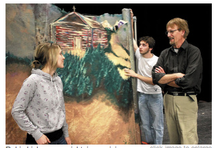 Holly’s honors art class created their own version of Jamie Wyeth’s ‘seven deadly sins’. Without knowing about Jamie’s version Holly had the students put a border on their paper, then paint fire, looked at seagull pictures and selected a sin. At the completion she shared the artists’ images and they learned about the youngest Wyeth artist. They were amazed and obviously proud. What an impact the work makes as a group and of course, stand alone.