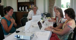The workshop, “Exhibit and Critize: Visual Arts and Web 2.0,” was presented by Sarah Sutter, art teacher & technology integrator at Wiscasset High School, was held on what was surely one of the hottest days in Washington County history. In spite of the temperature, the participants had a great time exploring wikis and blogs and managed to stay cool in the darkened classroom.