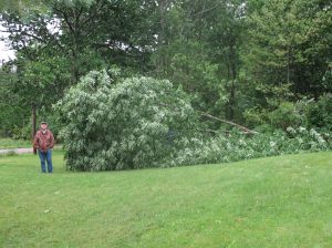 Some of you must have experienced the big wind last week with the rainstorms. One gust swooped through our property and took this tree down with it. Yes, a very large tree that we were glad went across the lawn and not towards our home because, it certainly would have done some damage.