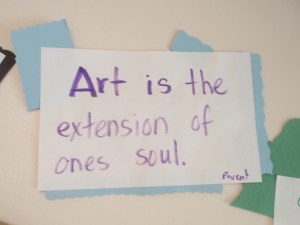 The arts educators in Maine never cease to amaze me with the incredible work taking place in classrooms across the state. It was a beautiful week to be on the road in Maine and great that I could visit some classrooms and schools and with arts teachers. I must say traveling to York on Wednesday in the rain was a bit tricky but it made the trip that much more interesting! The weekend was beautiful and I had a chance to plant some tulip bulbs and go for long walks.