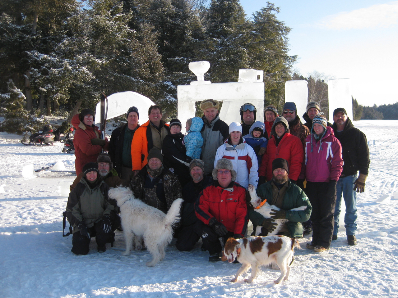 The Libby’s, including Matt and Ellen and their son and daughter in law, Matt and Jesse, were grateful to all who participated and the record ice cutting time left an afternoon of exploring, creating and hanging out by the fire. The creativity exploded with some chain saw sculpting with ice as the medium. Eight foot high numbers making 2011 were cut and stood up and a goblet placed on top.
