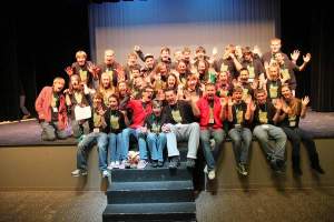 Cast, crew and director Alison Machaiek of Rockland District High School's Just Off Broadway Players. Photo taken by David Johanson