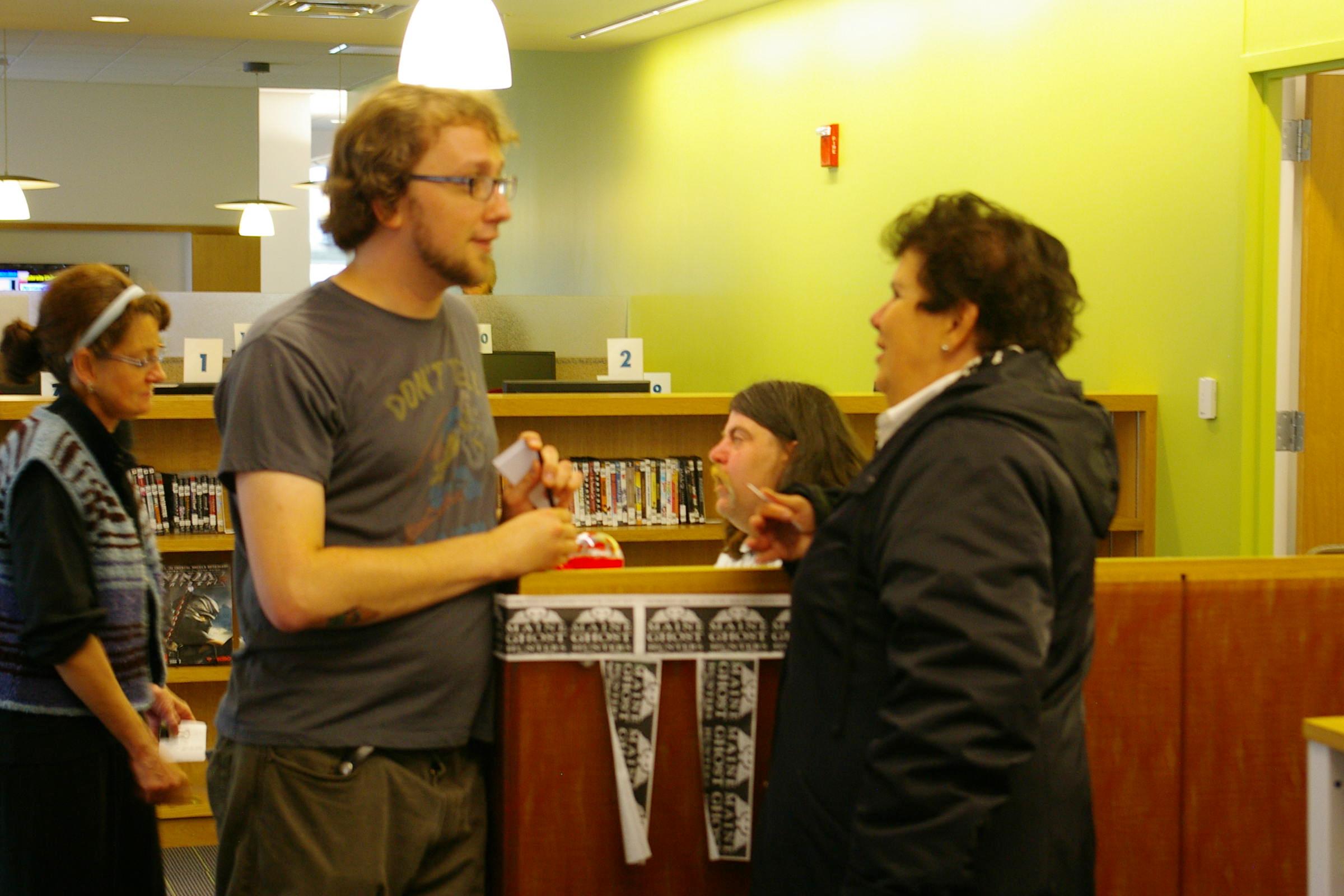 Visiting team member Bette Manchester speaks to Teen Librarian, Justin Hoenke, Portland Public Library