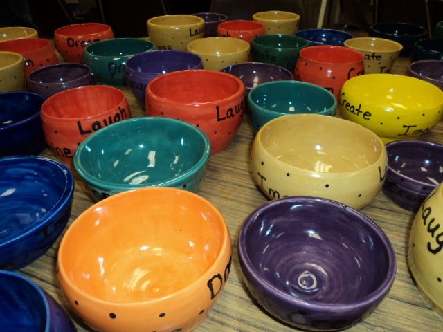 I throw all the pottery and my middle school students glaze them. After the work is glazed I use a glaze pen and write the words, “Laugh, Dream, Create, Imagine” on each piece. I include a card with a poem with the following for each student.