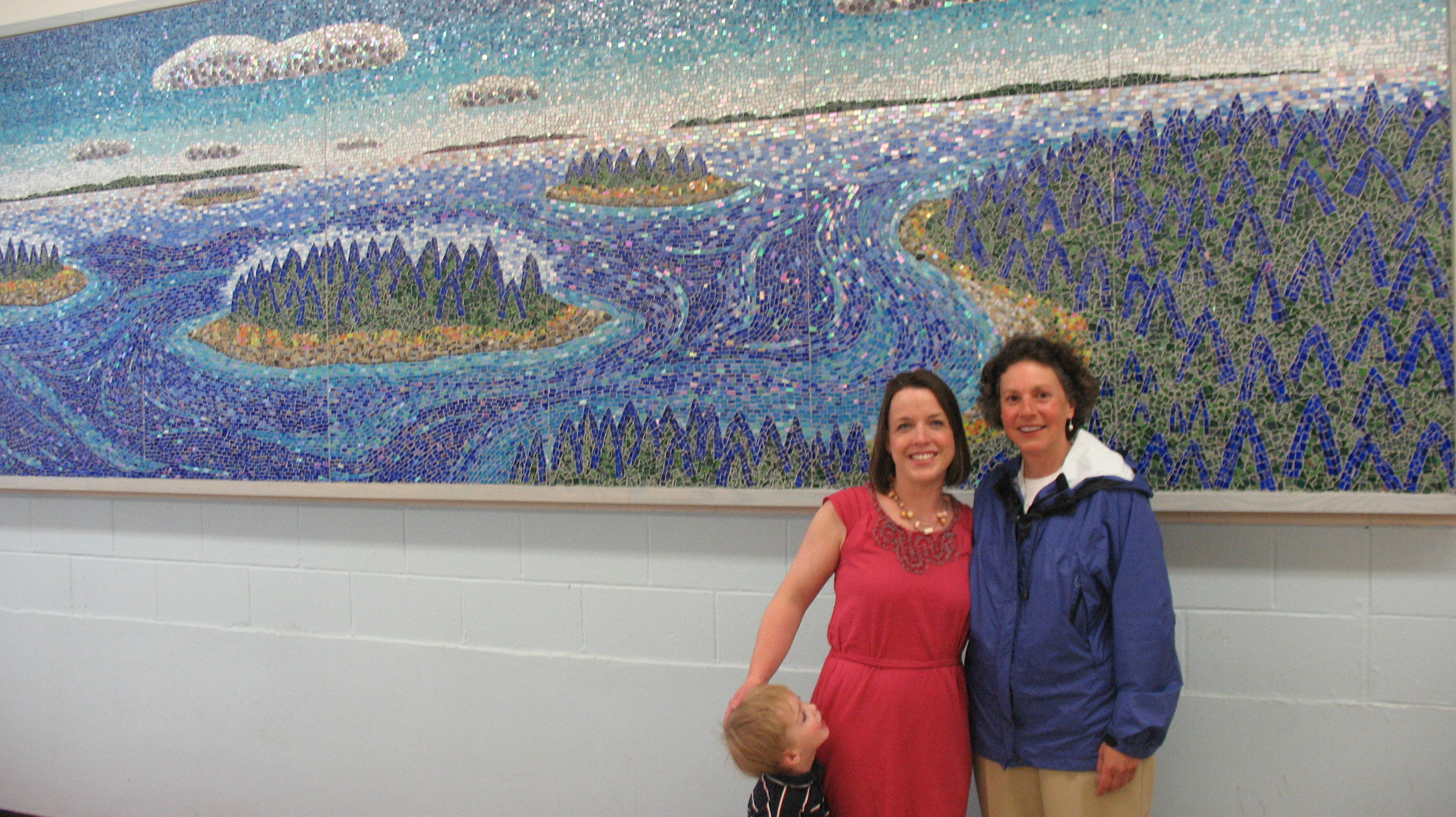 I was able to be at the reception on the day it was unveiled. I wasn’t able to be there until the end of the event however there were still a few parents and students there. Eric Hopkins was on his way out and his face and few sentences communicated how impressed he was with the students’ accomplishment. Kristen of course, was very proud, and as you can see she has quite the smile on her face in the photo below. It was great to see the piece completed, installed, and once again I was reminded of the power of the arts in action! For years students can remember their part and return to school for generations and point to the section they completed. They can imagine that moment in time and know that each persons contributions are important to the whole.