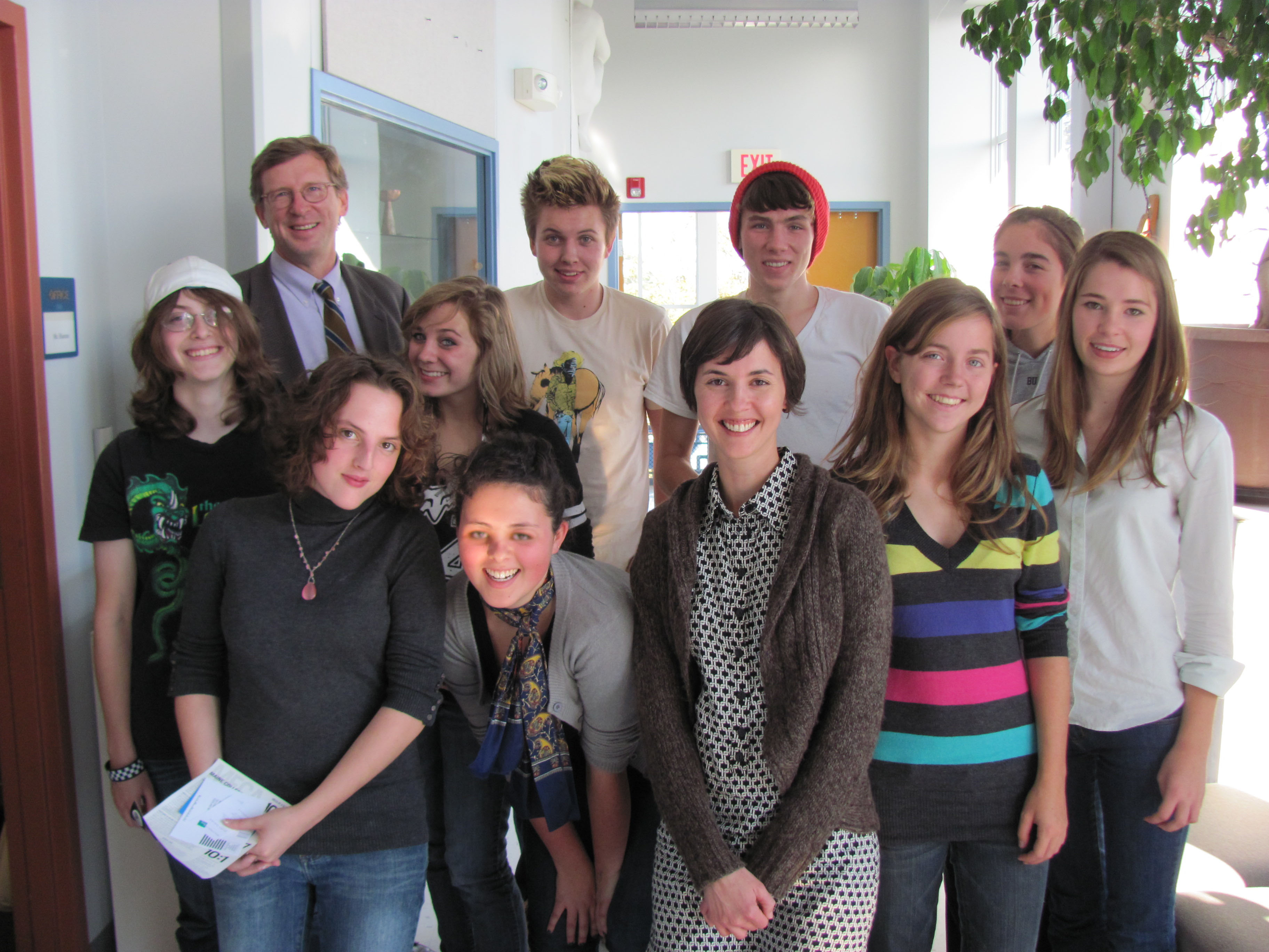The president of the Maine College of Art (MECA) , Donald Tuski, visited Belfast Area High School (BAHS) on Oct. 26th. He was there, along with admissions representative Shannon Cote, to speak to Mr. Hamm’s Art Portfolio class and to tour the Fine Arts facility. Tuski says: “I just love what you have going on, here in Belfast“. BAHS students have traditionally received generous support from the Portland College due to their strong drawing portfolios and diverse experiences in the arts.