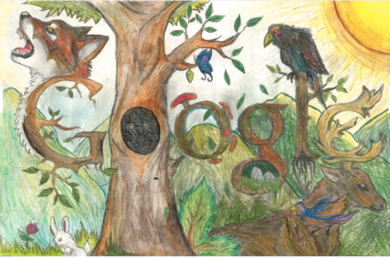 A HUGE CONGRATULATIONS to Maine’s one lucky state winner, Cape Elizabeth Middle School 8th grader, Isabel Robertson. Her statement about where she’d visit, “I chose a present day woods simply because that’s where I enjoy being. It’s beautiful and untouched.” In order for Isabel to move forward SHE NEEDS YOUR VOTE! You many vote only once until May 10th for Isabel at: http://www.google.com/doodle4google/vote.html#d=d4-6 and voting is taking place until May 10th. Don’t hesitate, click on the link today. And congratulations to Isabel’s art teacher Marguerite Lawler-Rohner.