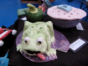 There were opportunities for students to engage in hands on activities: hat making, t-shirt screening (the 2012 Arts Festival Logo), face painting, & card/book mark making with stamps. One highlight of the event was the life like recreations of Grant Wood’s American Gothic & Edvard Munch’s The Scream. In both works, the faces were cut out, so people could stand behind the works and literally become a part of the paintings. The event was a huge success, judging by the number of students who were still talking about it the next day and still donning their face paintings and silk screened shirts.