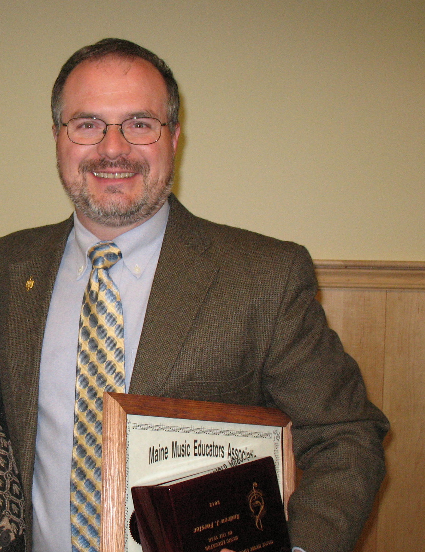 Andy assists at every school music event in RSU #18. He can usually be found setting up, breaking down, doing stage tech. and lighting, providing sound reinforcement, recording, teaching students how to record, and taking professional looking photographs. (This is often done during one of his own concert band concerts). He does this without complaint, and never hesitates to be of assistance to his music students, parents and colleagues.