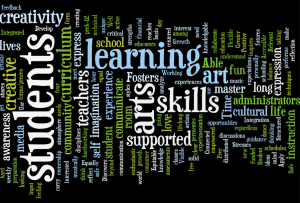Each participant answered the question… What does an ideal arts education for all students look like? Their ideas were combined to create a vision statement. Along with the vision statement all of their ideas were combined in a Wordle and is below. More information on the institute will continue in other blog posts.