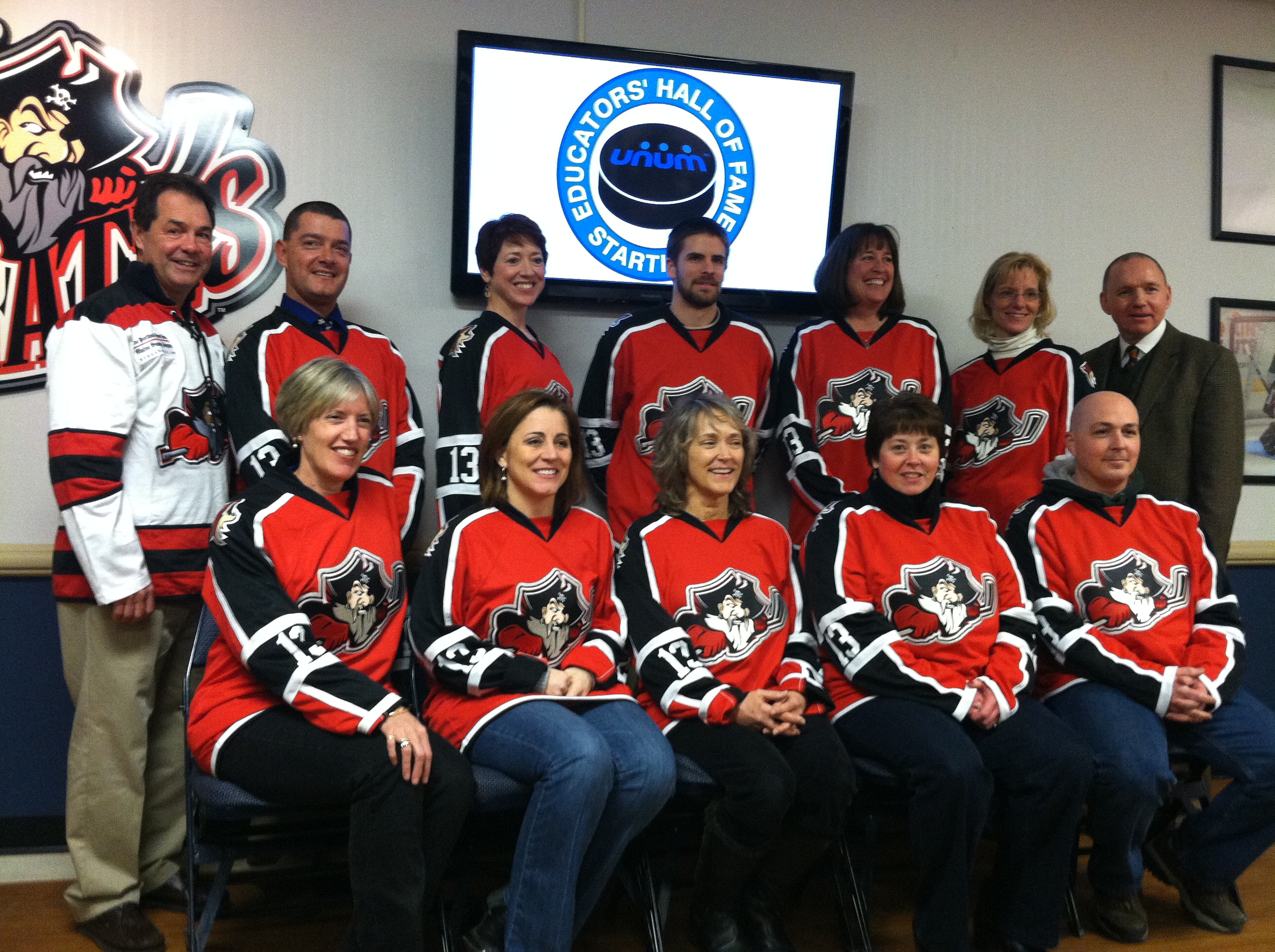 Each honoree was recognized on the ice, given a personalized jersey and a $500 check for personal use. YAY for MIKE! Arts Education in Maine is PROUD of YOU! We know this recognition is well deserved! By the looks on the faces in the photograph below it looks like the event was a lot of fun. For those of you who do not know Mike, he is the second from left, top row.