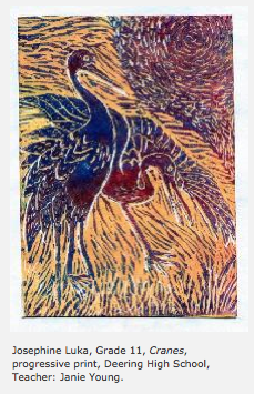 Congratulations to Manon Lewis for coordinating the event and for the other MAEA board members for their contributions. And congratulations to the teachers who took the time to select the work, transport it to Portland, and provide the information for display. In many cases the teachers attended the opening reception to celebrate their students.