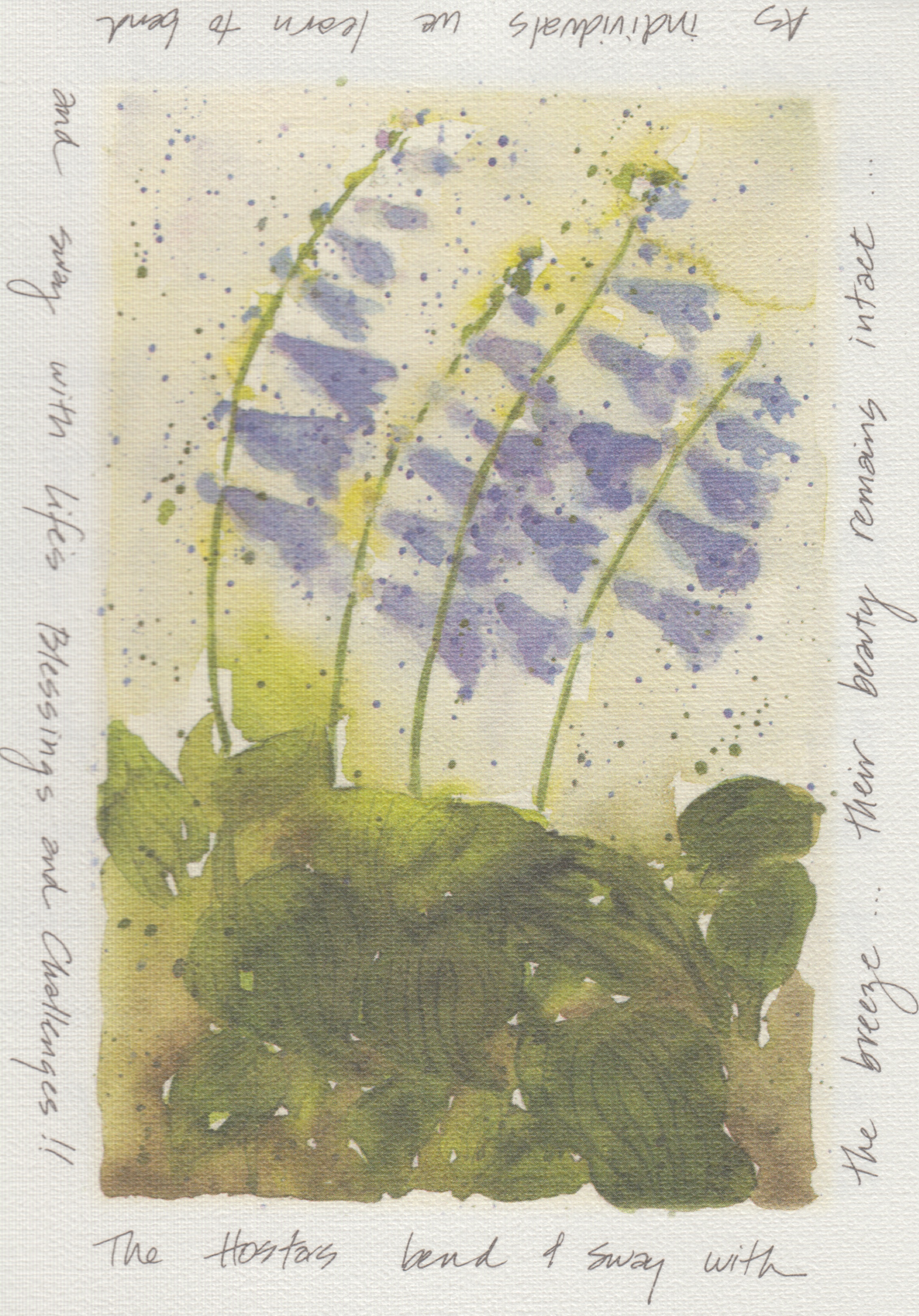 The card Mrs. Richardson sent has a watercolor painting on the front that shows purple flowers shooting up from the deep dark green hosta leaves. The message on the front says: The hostas bend & sway with the breeze… their beauty remains intact… As individuals we learn to bend and sway with life’s Blessings and Challenges! Ain’t it the truth??!! I hope you will have a few minutes during winter break this week to reflect on the past and what you are doing presently in your classrooms.