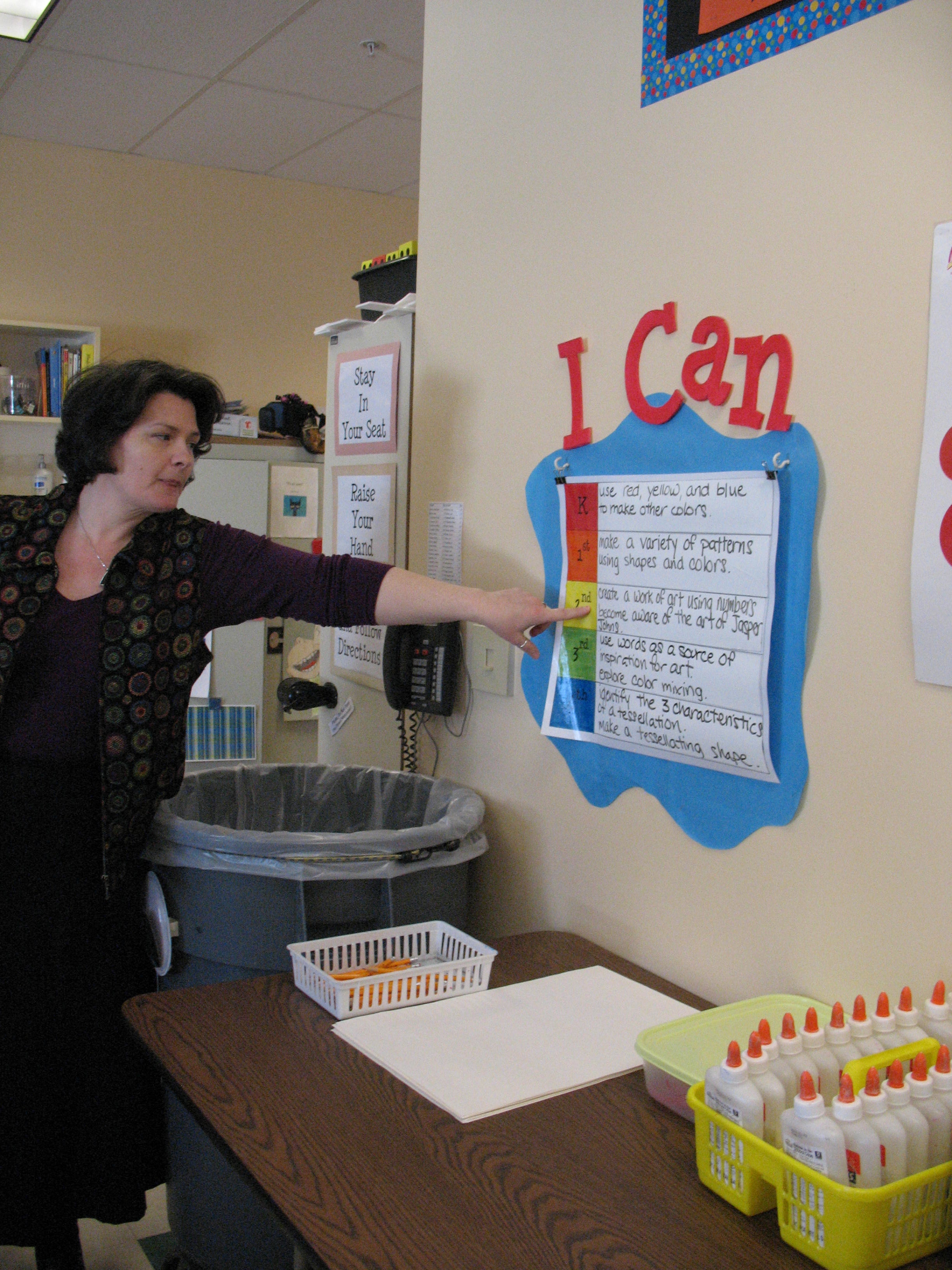Not to long ago I had the privilege of visiting Lisa Ingraham’s art classroom at Madison Elementary School. Lisa teaches K-5 students and her room certainly reflects her love of teaching but more importantly it is arranged for student success. The colors, organization, age appropriate visuals, and every detail is about the age of her students. Her lessons were spot-on incorporating literacy in multiple ways that enhance the visual art curriculum.