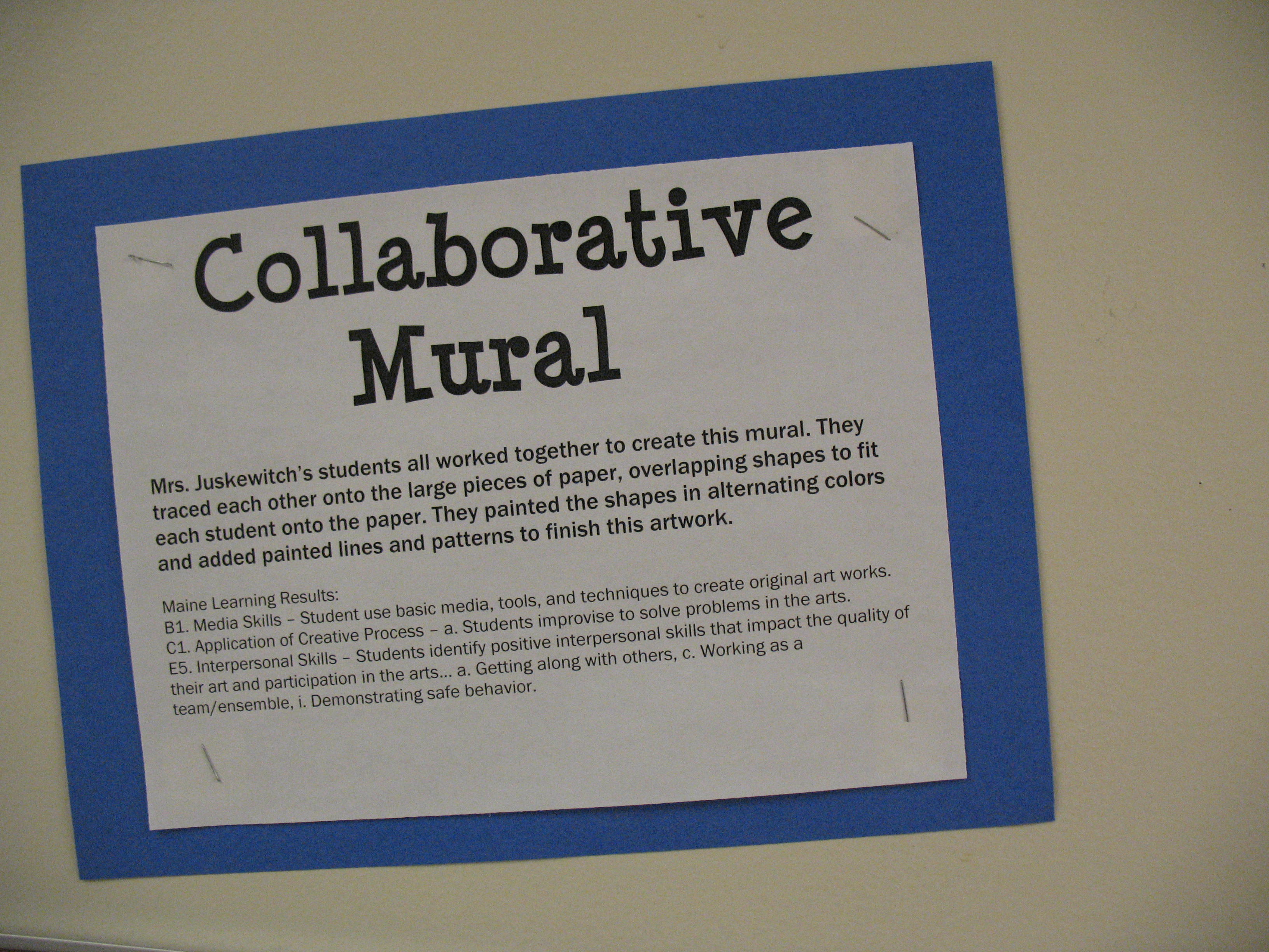 Not only was her classroom amazing but the school was alive with artwork. Every hallway, outside of every classroom she had shown evidence of a standards-based art environment. With each display, an explanation of the lesson.