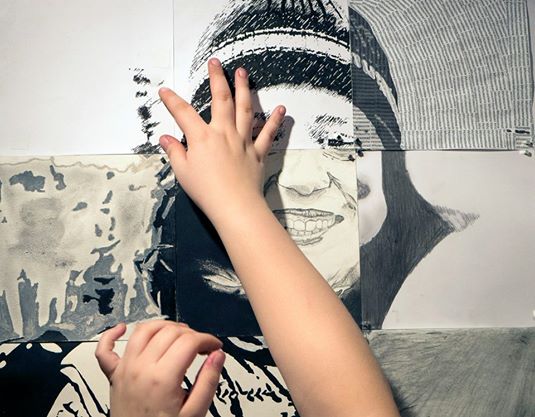 1560699_479914208779321_552558491_nThe Collaborative Portrait Project began in my 2-D classroom four years ago. I wanted to develop a project that required a group effort, like the experiential education games that we played on Cow Island at Ripple Effect. I wanted to translate that group leadership dynamic to art making. At the same time I had to deliver the value studies lesson. I was also mandated to work both digitally and manually. So in this project I begin by asking the students to research and nominate a hero, “give me three good reasons why I should vote for your candidate”. At first they suggested movie stars and pop idols, like Micheal Jackson, Hugh Jackman, and they were all male. I hinted that they could go deeper and choose people that were more meaningful to them, more relevant of the present time, and more deserving of an epic portrait. Now we are getting nominations like Malala Youzefsai, Amelia Earhardt, Edward Snowden and the Dalai Lama. Each time I do the project I figure out a better way to do a certain aspect of it. The students give me suggestions.