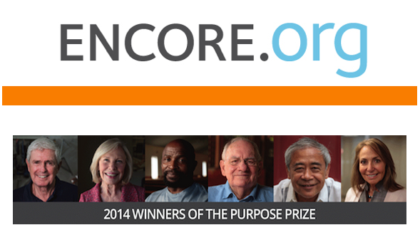 Created in 2005, Encore.org’s Purpose Prize has awarded nearly $5,000,000 to changemakers age 60 and older who are using their skills and experience to advance the social good. Read more about the six 2014 winners, who were awarded a total of $300,000.