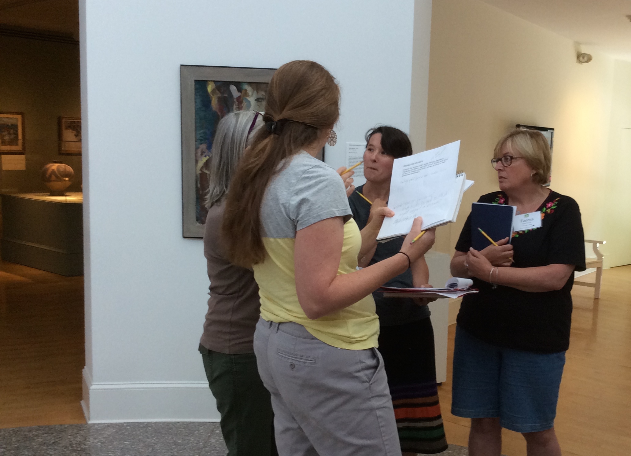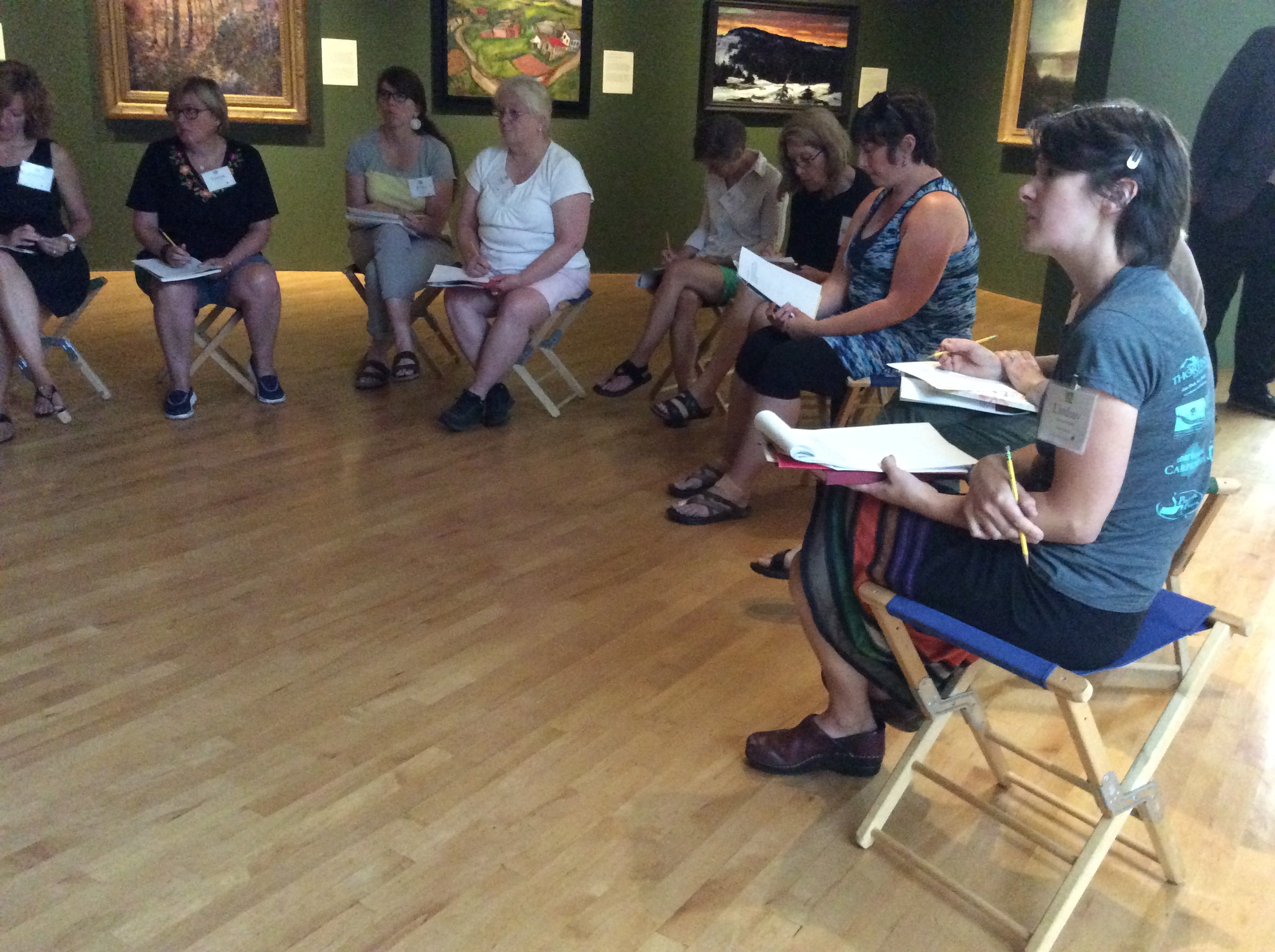 I was glad that I had the opportunity to visit during one day of the workshop and see the program in action! The teachers, working in groups of four, were engaged in conversation after ‘deep looking’ at artwork. Some of the teacher reflections on the value of re-visiting works of art included the following: