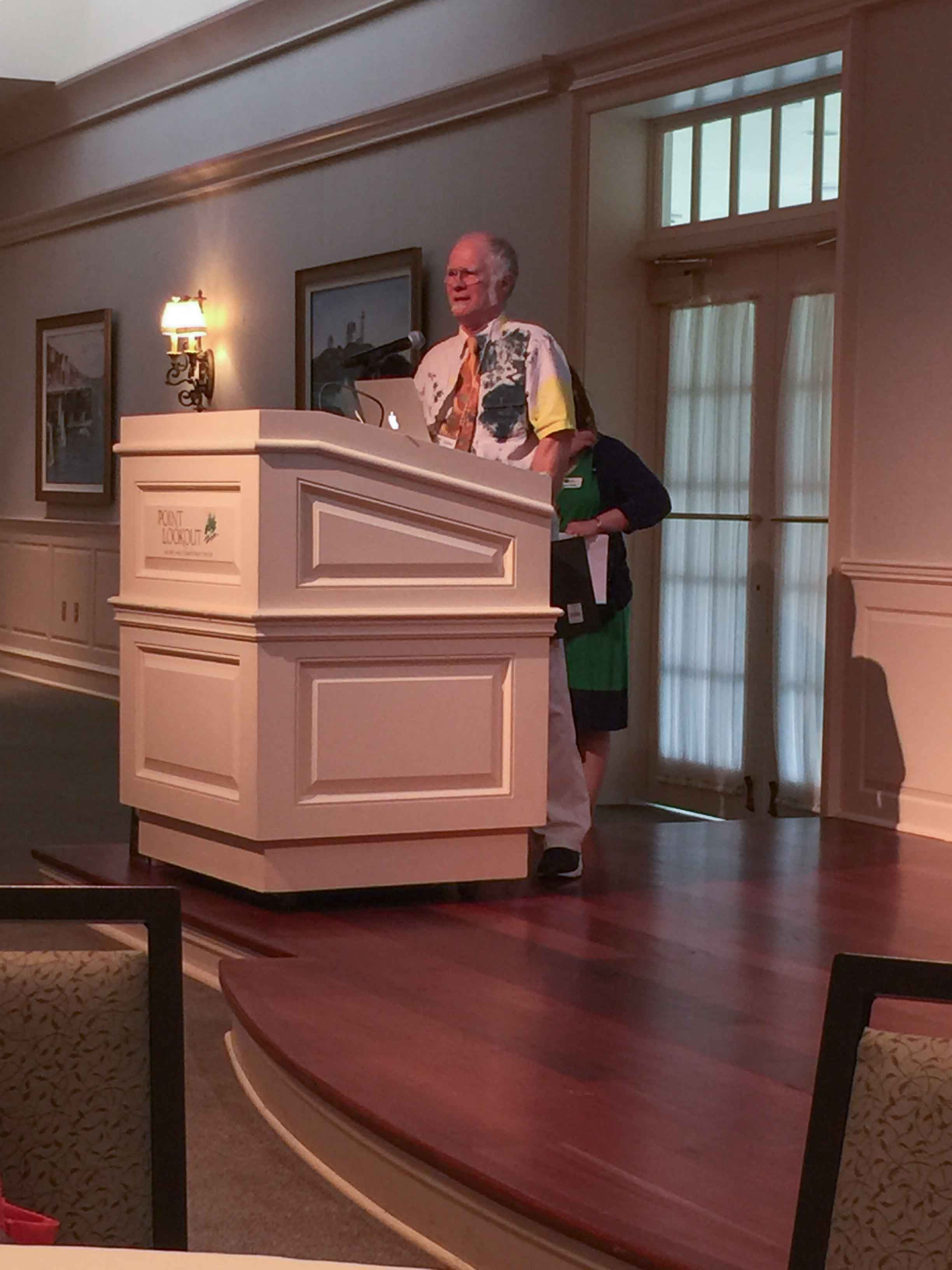 Charlie’s family is part of the surprise. Here they are waiting in the lobby at Point Lookout Conference Center for the right moment.