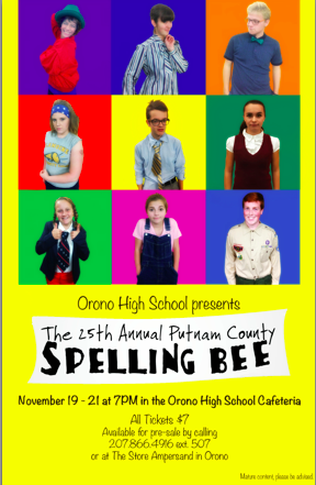 Orono High School is preparing for its upcoming musical production of The 25th Annual Putnam County Spelling Bee. This uproarious show features six actors portraying adolescents at the 25th Annual Putnam County Spelling Bee. Spellers soar and stumble through words as we learn their stories and discover their motivation to win “the bee.”