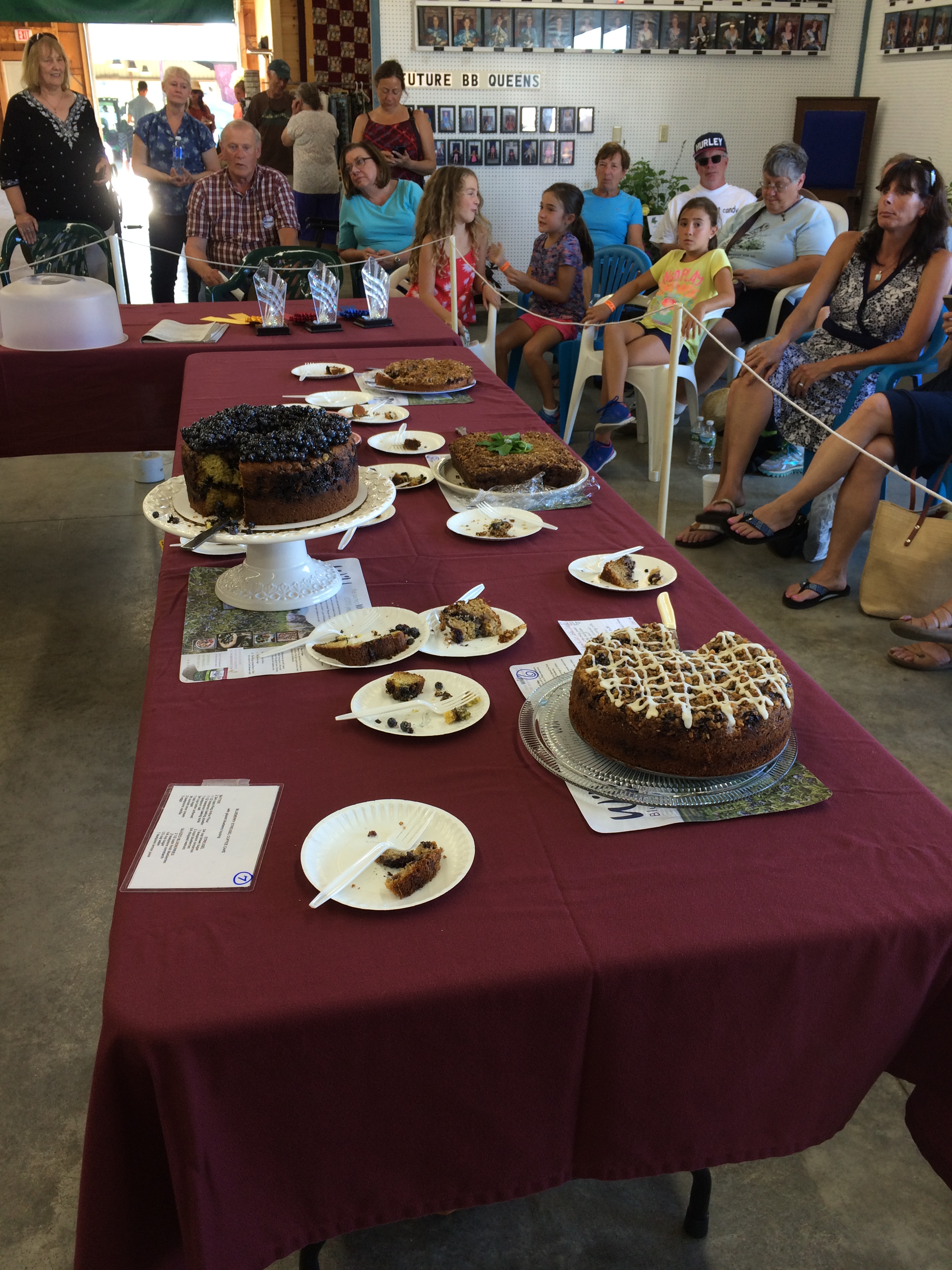 img_0553In August I had the opportunity to judge the blueberry coffee cakes at the Union Fair. I was excited to participate for several reasons. Included was the fact I was curious about the scoring criteria and the process. When I arrived with the other two judges, I was handed a score sheet attached to a clip board which included a line for each of the over 20 submissions. Of course, the best part was the chance to try each one of the yummy recipes. Many people enter each year and often enter each of the blueberry categories (one each day) including blueberry pie. For some of the categories the rules include following a recipe that is provided. But for coffee cake each cook can choose their recipe.