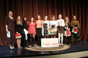 Maine Poetry Out Loud State Finalists: (left to right): Emma Beyor, Kate Hodgson, Amran Mahamed, Skyler Vaughn, Arielle Leeman, Antyna Gould, Gabrielle Cooper, Natalie Lisnet, Jordan Bryant and Sabrina Small.
