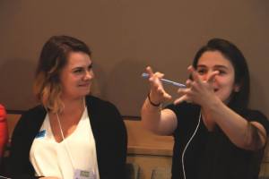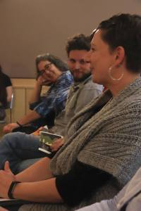 Education Artists Bess Welden and Julia Fitzgerald at a Play in Schools dramatic reading Photo by Aaron Flacke