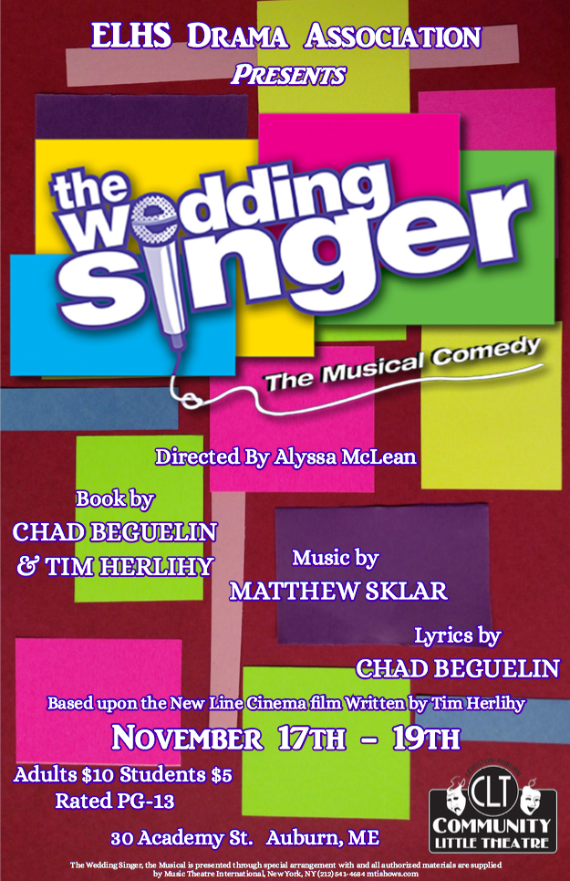 November 13, 2017The ELHS Drama Association will present The Wedding Singer. Sarah Brooks, Choral Director, from the high school is the Musical Director for the fall musical. The performance is Friday, November 17 and Saturday, November 18, 7:00 p.m. and Sunday, November 19, 2:00 p.m.