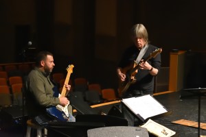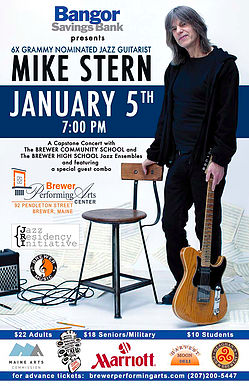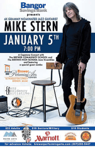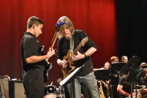 During Mike Stern’s visit to Brewer he touched on all of these themes to varying degrees, but it may be his positive energy and encouragement to “Just keep playing. Keep music in your life regardless of if you intend to perform professionally, teach it or just enjoy it” that is best remembered. Stern also shared non-musical pearls of wisdom such as “learn to get along with others” and “don’t hold grudges.” One highlight was when the  64 year old jazz guitar master informed the students that he still has a teacher and that like him, they should all “practice what their teachers assign first and save the easy or fun stuff for the end of their practice time.”