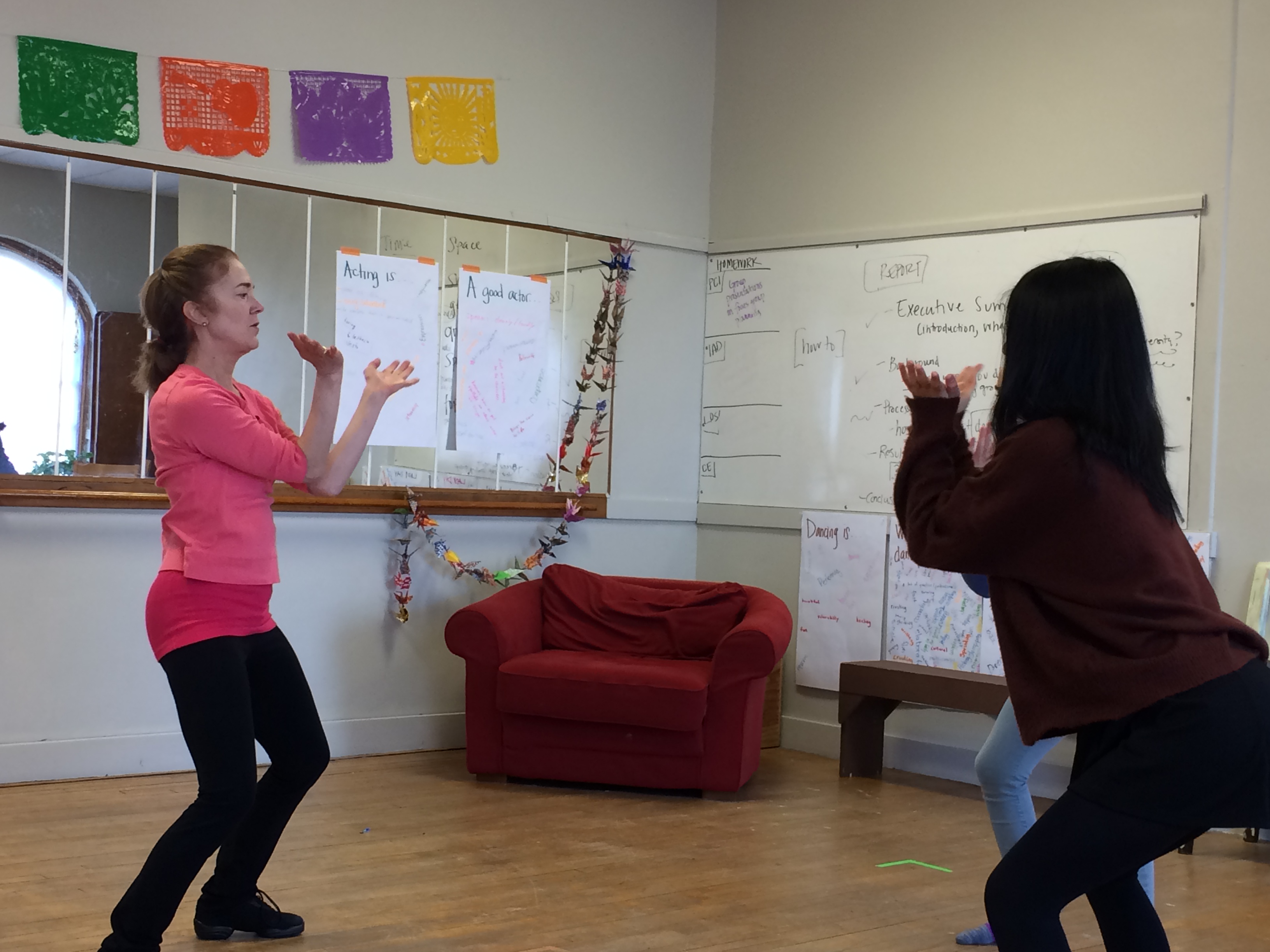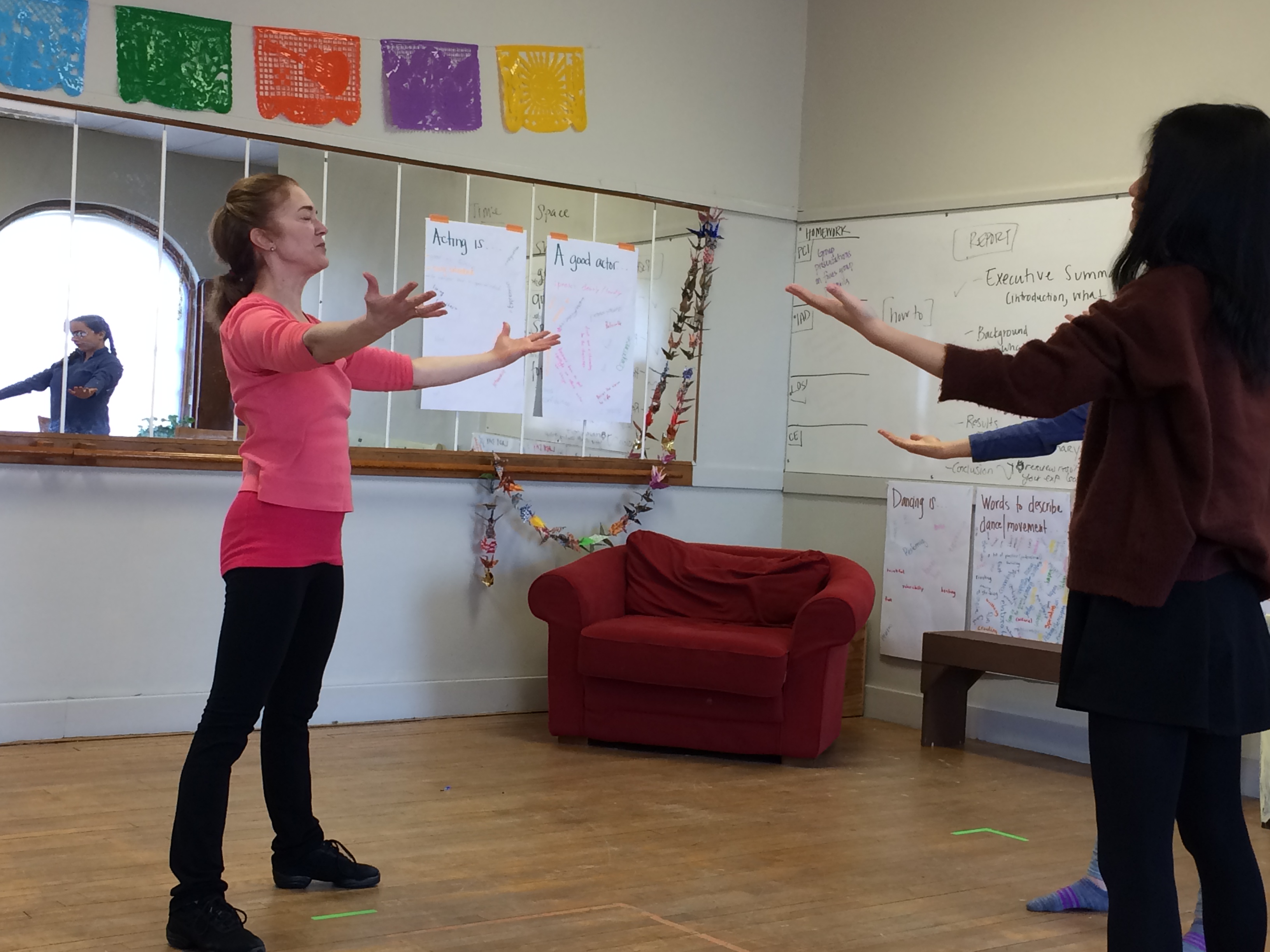Karen worked with three high school performing arts classes on movement, presence, and performance. Students were challenged to use their bodies in ways that were very different from their daily routine – to move, to improv and to explore. At first, this was an extremely challenging and uncomfortable experience for students, but as they became more familiar with Karen they were able to release some of their self-consciousness and participate with more freedom. In writing about their experience students shared reflections such as, - ” I truly believe that she opened a door to an unknown side of myself. Through the unusual games and dance movements, she helped me gain confidence moving and using my body as a tool.”