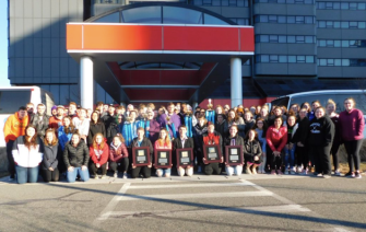 March delivered great snow. We got 12 inches of fresh snow on March 8 and 9 and the magic happened. Jason arrived at school at sunrise and sketched the design in snow. He laid down the initial circles and paths for students to follow. We kept the groups small, we had 12 pairs of snow shoes. Students were given directions to follow the path and follow Jason’s directions. Students could watch if they did not want to participate. For many students this was the first time on snow shoes. However, when the first drone pictures came out, more students wanted to participate. About 150 students in grades 6, 7 and 8 created the work of art with Jason.
