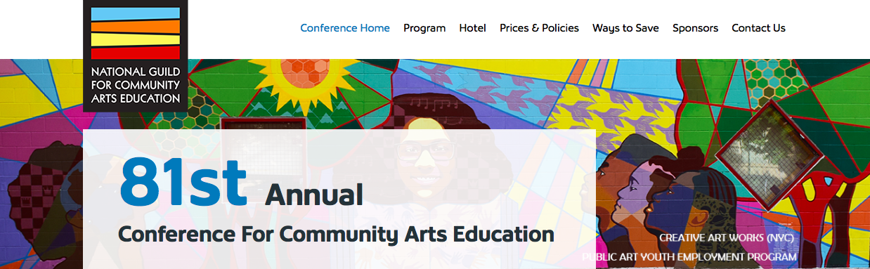 The Conference for Community Arts Education is the leading national gathering for nonprofit arts education leaders representing arts and cultural centers, community arts schools, preparatory programs, performing arts companies, youth serving organizations (e.g., Boys and Girls Clubs of America), museums, and other agencies. Some organizations provide classes and lessons in their own facilities; others collaborate with senior centers, hospitals, public schools, and other agencies to increase access to arts education. Many do both. This diversity of backgrounds creates unique opportunities for delegates to connect with peers, explore new partnerships, and grow. Funders, policy makers, academics, researchers, and other allies, including those in non-arts sectors (e.g., youth development, health, education, etc.), are also encouraged to attend. Ensuring that all people enjoy access to quality arts learning opportunities throughout their lifespans requires a collective effort. To learn more about the National Guild for Community Arts Education programs PLEASE VISIT