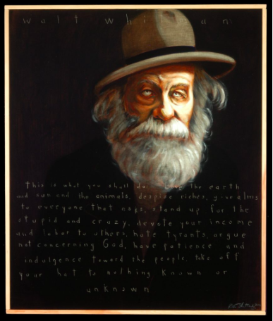 Walt Whitman was the first portrait he painted. The quote on the painting is the preface to “Leaves of Grass”, a poem of Whitman’s: