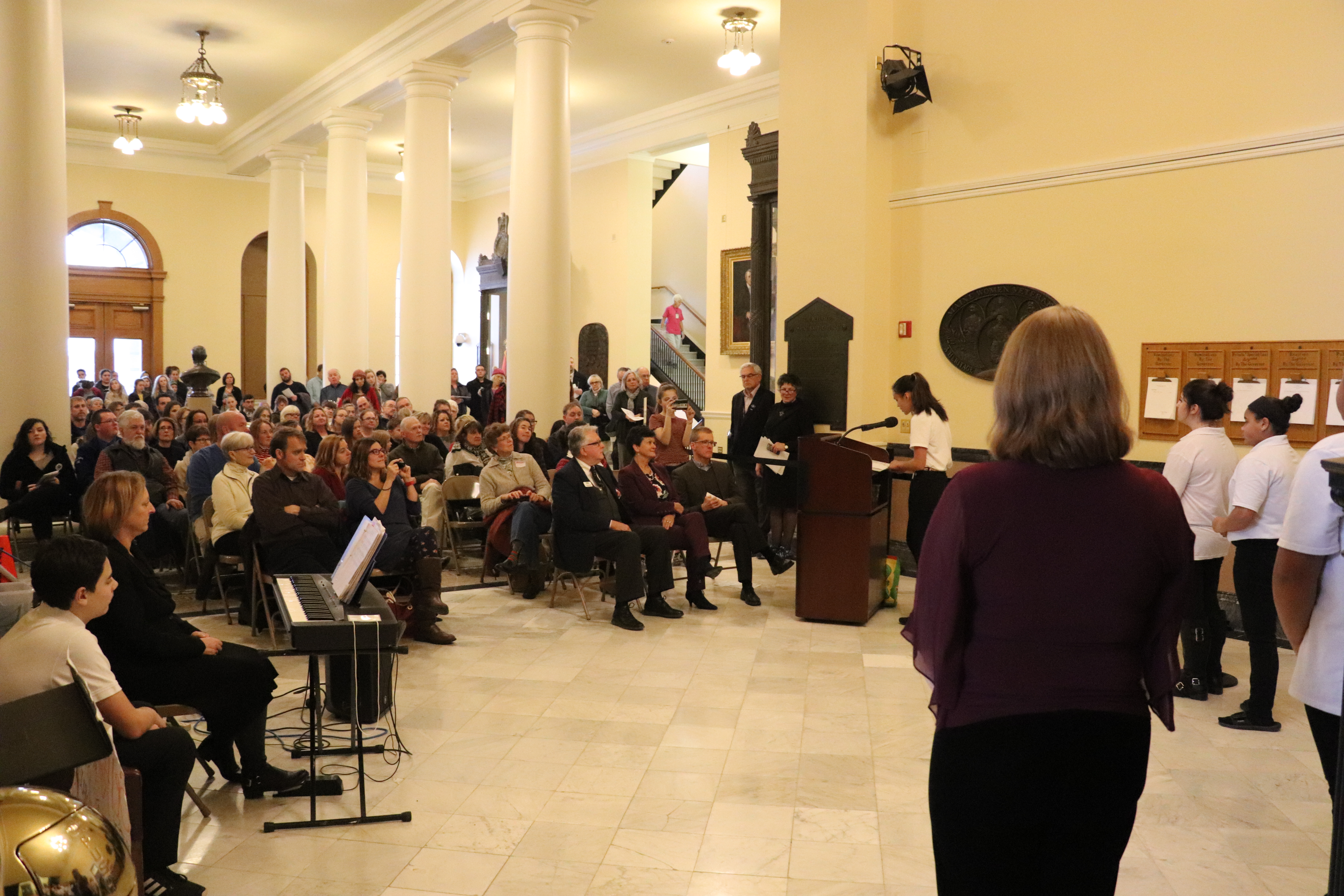Ruth Elaine Schram) which started the afternoon program in the Hall of Flags. It was amazing and moved many in attendance to tears. The visual artists were recognized for their individual artwork by Julie Richard, the MAC Executive Director and Charles Stanhope, the MAC Chair.