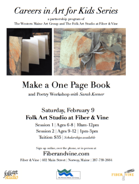 The Western Maine Art Group (WMAG), The Folk Art Studio and Fiber & Vine have partnered to bring this workshop series to the Oxford Hills. Through a generous grant from The Norway Savings Bank, Oxford Credit Union and the Rotary Club, scholarships are offered for those with financial need.