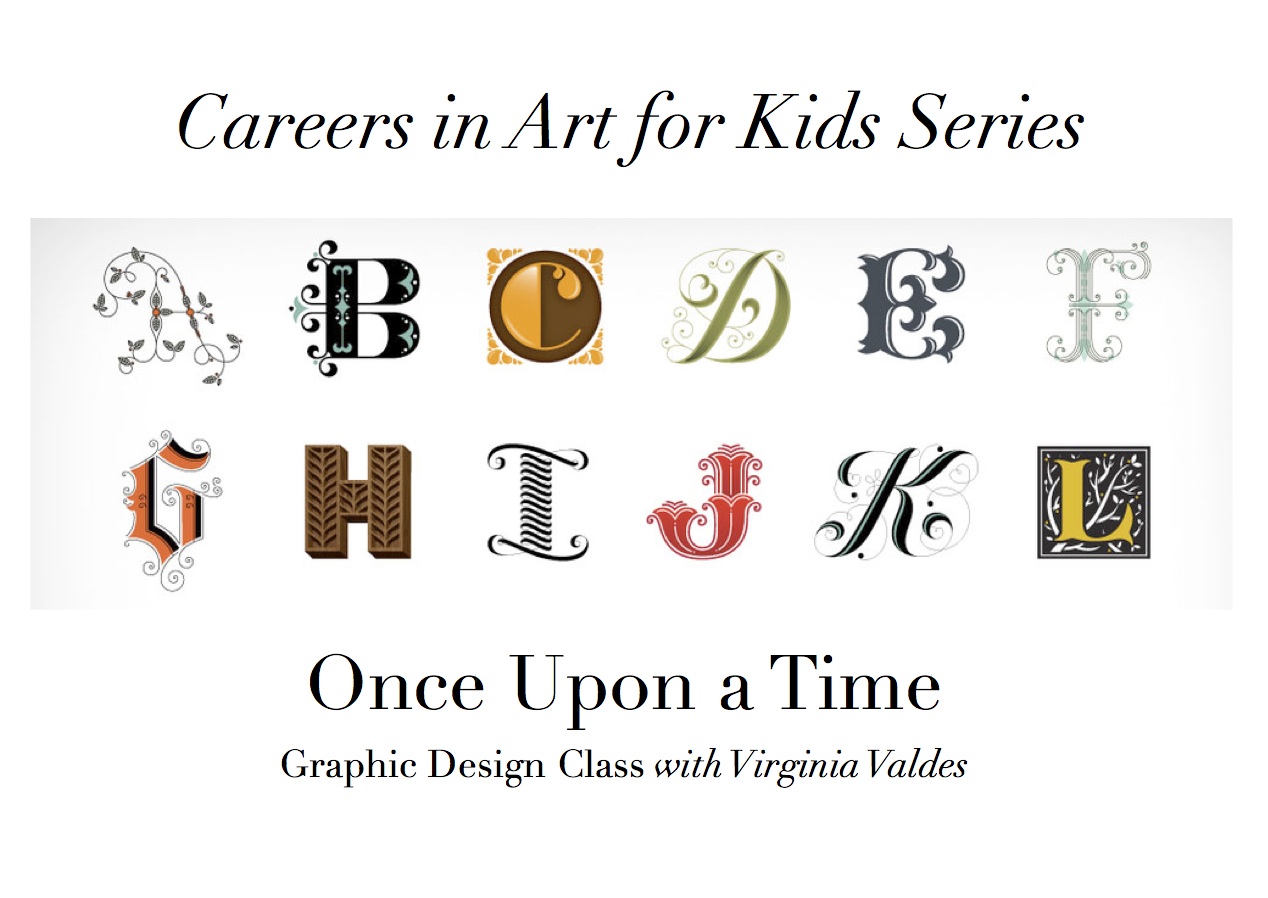 Once upon a time… the beginning of a fairy tale starts with a big beautiful initial letter. Today we will work with the first letter of your name to create a beautiful ornamental letter/monogram in celebration of hand made typography. We will create our own decorative initial cap font using colored pencils and markers. We’ll start out with a brief history of letters, look at a few examples from past to present and then take off on our own journey exploring myriad ways to embellish, flourish and design our own abstract or floral initial letter. If you have a favorite pen or marker you use, bring it with you.