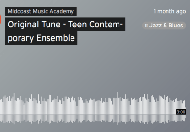 Midcoast Music Academy (MCMA) provides strong opportunities for learners of all ages to learn music and in addition, they support and encourage ‘out of the box’ thinking.An example of this recently took place when instructors Tom Luther and Joe Cough co-taught a lesson with the intention of coaching students to create a new piece of music. Tom and Joe are both Teaching Artists Leaders with the Maine Arts Leadership Initiative (MALI). The students, Cameron Pinchbeck (alto sax) and Aili Nell Charland (guitar), improvised and performed an amazing piece. They started with Cyndi Lauper’s “Time After Time”, and their improvisation took them to a totally new work. Tom said: “I think that this is a great example of what can happen when you give students choice, and help them to believe that their story is worth telling.”