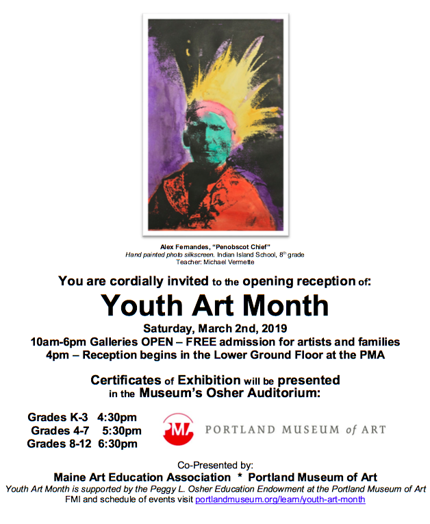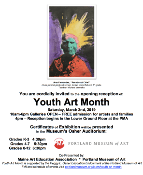 For more information on the Youth Art Month exhibition visit www.portlandmuseum.org/learn/youth-art-month