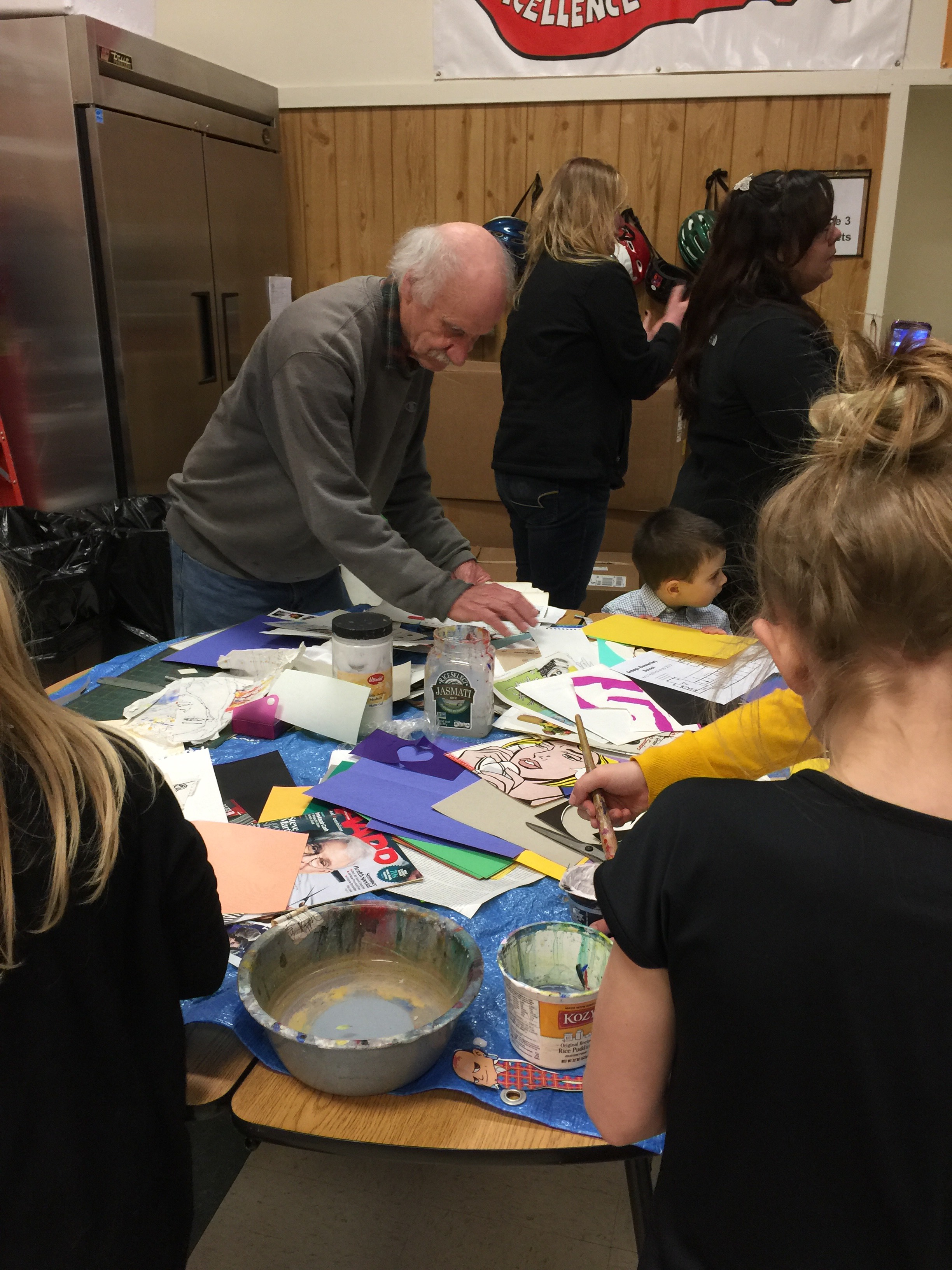 Visitors at the event had the opportunity to explore the work of 4 demonstrating artists. The lovely stained glass work of Nancy Fitch and Kayla Olsen brought a lot of attention. Nancy also led inquisitive children through the creative process. Painter Richard Allen gave students the chance to create work with him, and printer Sarah Parrott afforded people the opportunity to operate her printing press and create some cards.