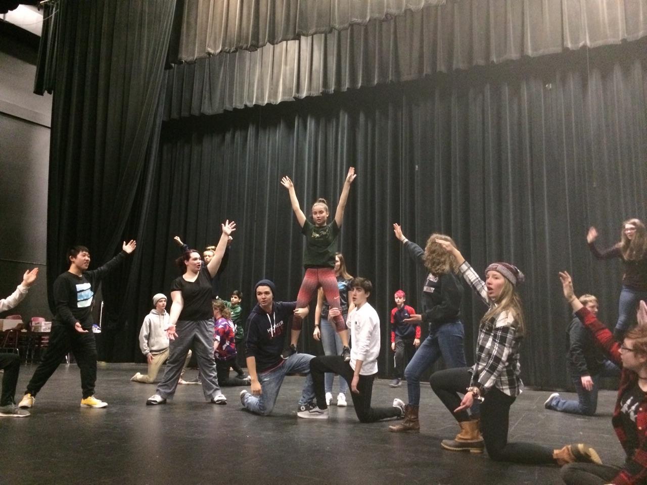 - Dance was incorporated into the work in a variety of ways. The work began with an introduction to dance movement warm-up and the elements that are common to all dance and movement of any kind as developed and described by Rudolf Laban (Body, Energy, Space, Time or BEST). Students view a demonstration by KQED Art School on Youtube and talked about the Elements. KQED includes a 5th element – Action, which was discussed but did not include further in our work. Students and teachers discussed where dance movement could be included in the scripts or the production to best support or enhance the message. The opening entrance used strong, quick and direct movement introducing each student and getting everyone on stage. In contrast a small cadre of students were the “Chance Butterfly Brigade” in the 3rd section, using quick, light and indirect movement illustrating the notion fleeting chances that one needs to grab. Pathways were explored as well as the notion of repetitive movement in order to create a background of indecision, decision, action, disappointment, success. Viewing another video students learned a specific lift that required trust, timing, strength, and cooperation to make a person “fly”. Several students were particularly successful at embodying the intention of their character by understanding and using the dance elements.