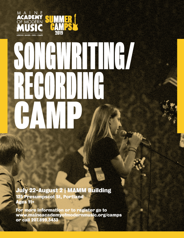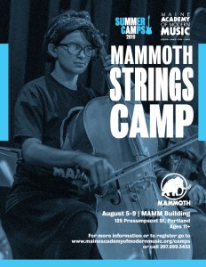 The Maine Academy of Modern Music (MAMM) has tons of camp opportunities for learners this summer. The dates, locations and costs are listed below. You can read the details about each of these camps at the MAMM Camps webpage on the MAMM site.