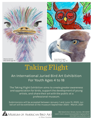 The Taking Flight contest is open to young artists age 4 to 18 of all skill levels. The exhibition of winners is displayed at MABA from November–December.