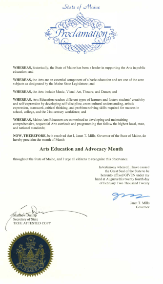- Governor Janet T. Mills signs Proclamation for Arts Education and Advocacy Month