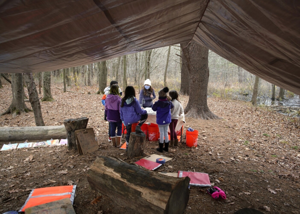 The article includes how art teacher Katie West is using an outdoor classroom at Lyseth Elementary School in Portland. As long as her students are safe she plans to continue teaching outside. Her classroom includes a tarp with waterproof cushions and stumps for students to stay appropriately space. I’m sure some of you are wondering about the winter elements and learners being prepared with the clothing to keep them warm. Fortunately the school district is using some of their relief funds to purchase clothing for students; 500 hats and 1,000 pairs of gloves have been distributed to students. Six-hundred pairs of snow pants are expected to arrive after Thanksgiving. An order of fleece will be cut up into blankets and neck warmers. Katie has received a $1,000 grant to start a gear exchange for the students at Lyseth.