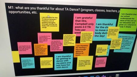 Emma splits the group into breakout rooms to brainstorm thoughts and ideas and recorded one voice from each group and sent Emma the recording. She screen recorded them saying the phrase. Emma takes the footage and voices and does the editing and uploaded it to YouTube. The results are below. A wonderful way to incorporate dance into student thoughts and the outcome is amazing! Thank you Emma and Thornton Academy dancers for sharing your love for dancing and your gratefulness during this season.