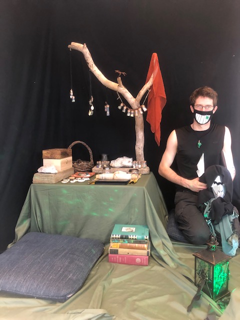 My entry for Getting There is unlike anything I’ve drawn or crafted previously. In the spirit of using innovation and divergent processes to make art, which is one of our seven MAT dispositions, I chose to bring my spiritual space into the tangible world in full life-size form. The Traveling Shrine is fully immersive and welcomes visitors on all paths of life.