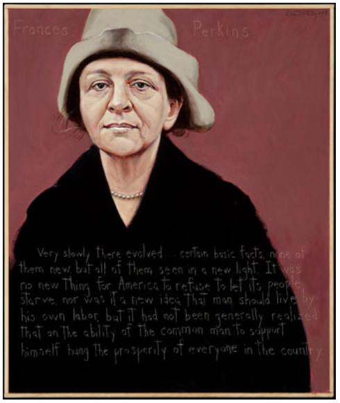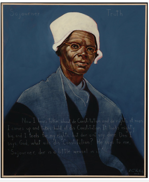 The portraits I chose are my some of my own heroes. When I was a kid growing up in Hancock, I had a copy of the Bill of Rights on my bedroom wall. I was committed to the ideals laid out in that document, but it’s taken me a lifetime to continue to learn some of our country’s hard history. In 2003, I went to work for the American Civil Liberties Union (ACLU) in Washington, DC, and I was assigned to work on building a national campaign to engage activists in calling for reauthorization of the Voting Rights Act. That was the beginning of my professional work to advance voting rights, and it also marked the beginning of my deeper learning and inquiry into the work of heroes like Hon. John Lewis, Frederick Douglas and Sojourner Truth. In 2009, when I was at the ACLU of Maine where I was Executive Director, the Frances Perkins Center gave me an award as a future woman leader. I received a glass hat modeled in the shape of the one Frances Perkins wore and a copy of her biography. Her work inspired me when I went on to chair the Labor and Housing Committee in the Legislature.