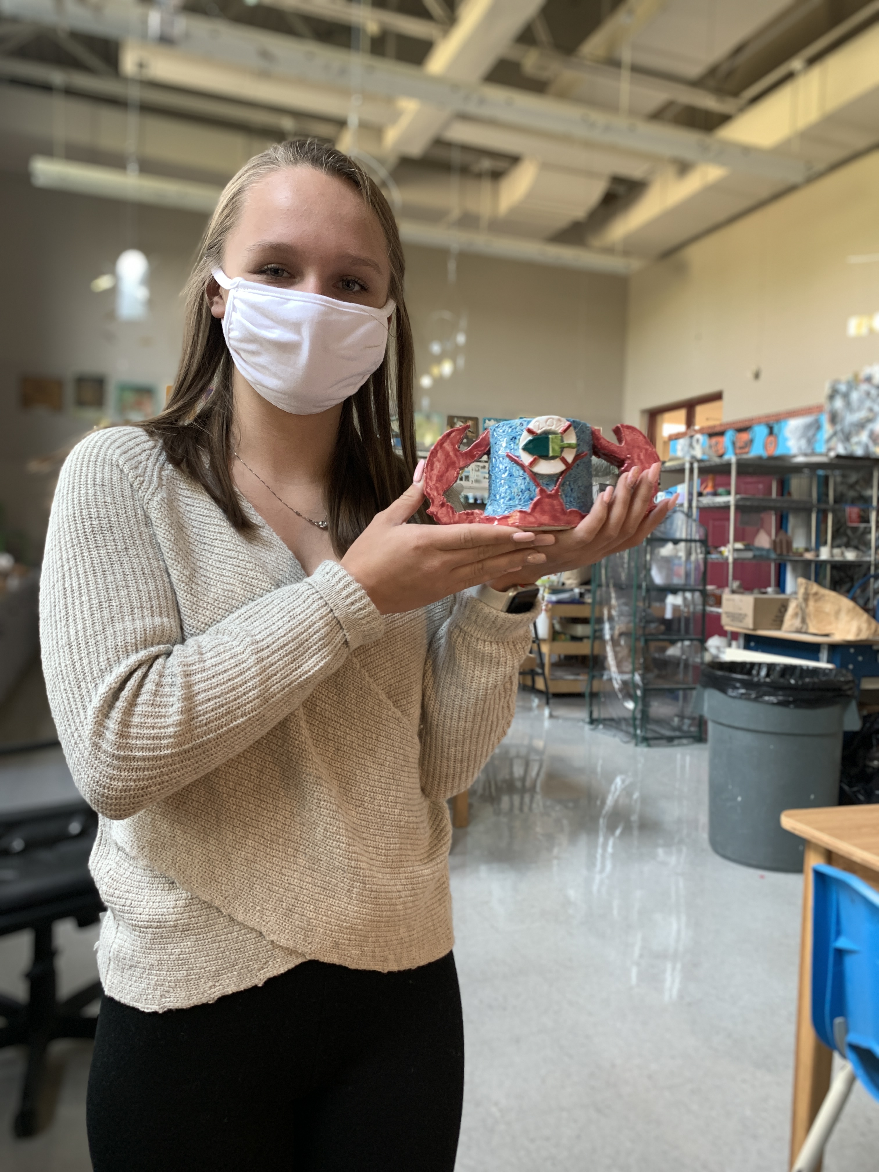 - Finally, I’m also learning more about teaching ceramics through trial and error. Like, don’t travel with bone dry projects. Telling students to not leave clay in the freezing cold car overnight, and cheese graters at the Dollar Tree work great for downsizing thick places in pots and evening out the surfaces. I learned that cutting pinch pots in half to see the thickness of the walls make for better pinch pot luminaries, raku clay is an excellent starter clay for slab containers because you don’t have to wait to join the walls, watercolor underglazes are a game changer for creativity and traveling back and forth from home to school. This is just to name a few! I often wonder what students will think of learning about jewelry and ceramics through the pandemic years from now. Hopefully, they will look at something they made and see the year 2020 or 2021 scratched into their work and feel a sense of relief, pride, and nostalgia! I am reminded daily by the phrase, “The Darkest Nights Produce The Brightest Stars”.
