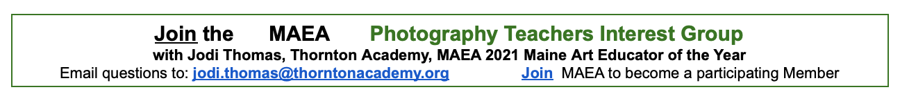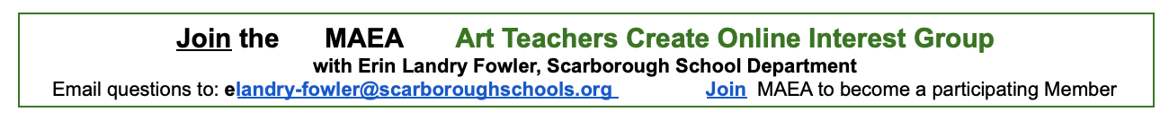 Maine Art Education Association is on the move continuing to provide excellent art education learning opportunities. The latest two on the horizon are listed below. If you’re not a member of Maine’s professional visual art education association consider being a member today and click this link to learn about the different membership options.